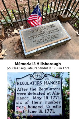 C’est à cause de son rôle prépondérant qu’il a attiré sur lui les foudres du Gouverneur William Tryon qui a fait détruire ses biens et vendre ses terres par les shérifs.
