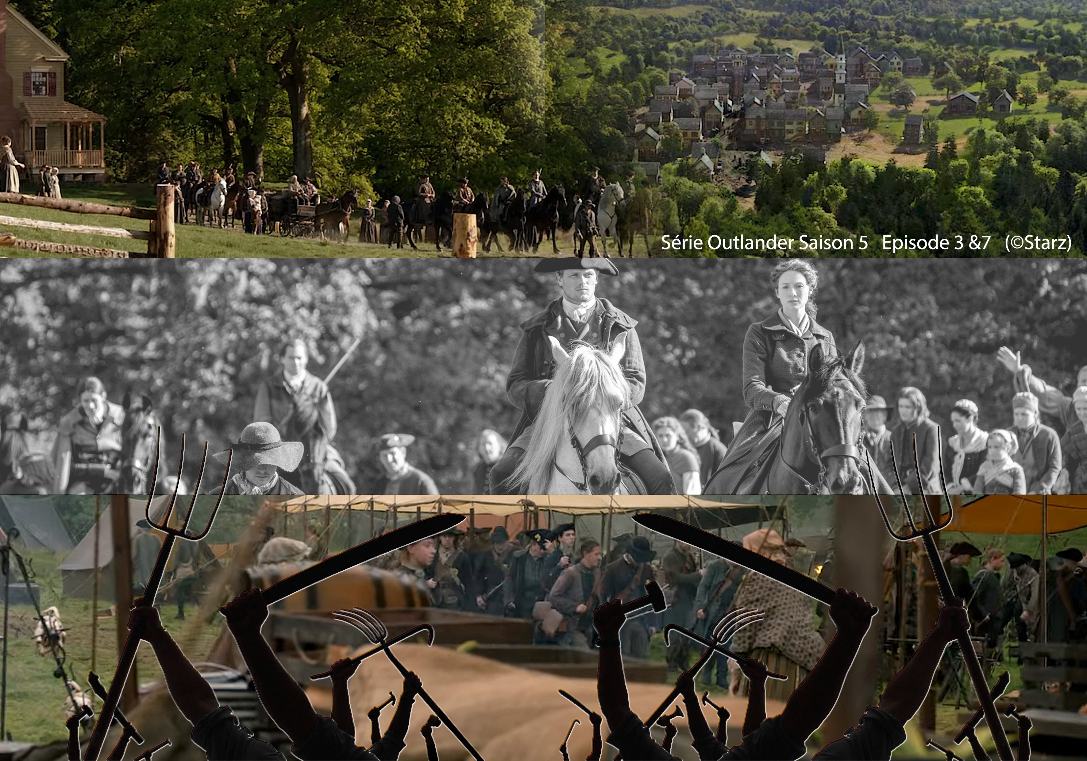 Cette évocation commence dans Les Tambours de l’Automne - Drums of Autumn (sur lequel la saison 4 est basée) et continue dans La Croix de Feu - The Fiery Cross (sur lequel la saison 5 est basée). Nous vivons pas à pas le mécontentement jusqu’à la bataille finale.