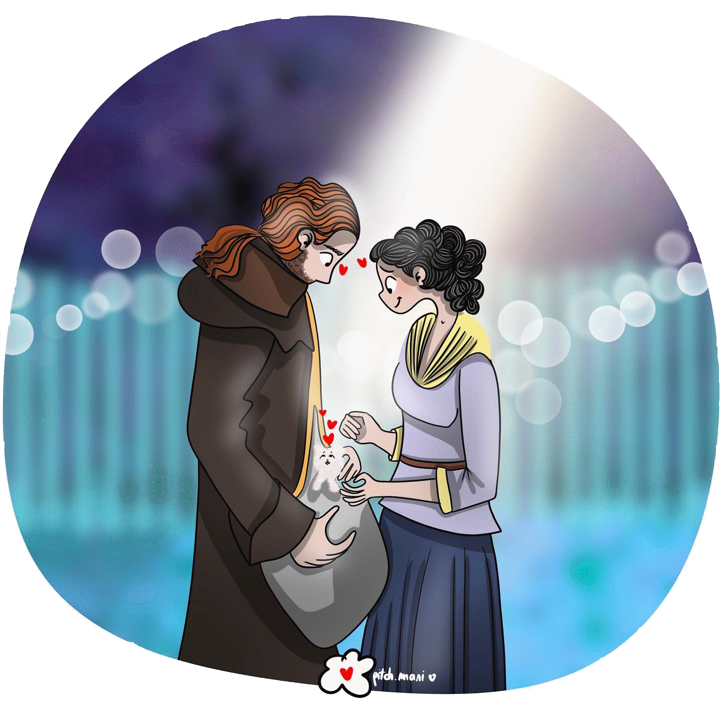 Pas de badinage décrit entre Jamie et Claire, mais des mots doux et des baisers tout au long de leurs rencontres,  ils se tournent autour, se séparent, se retrouvent, se cherchent, et chaque fois se réconfortent. Un petit passage délicieux, avec une belle déclaration, quand Jamie fait allusion à une histoire de la Bible (Sarah et Abraham donnant naissance à un âge avancé) et aborde la question de la ménopause et de ses désagréments avec franchise et compassion.