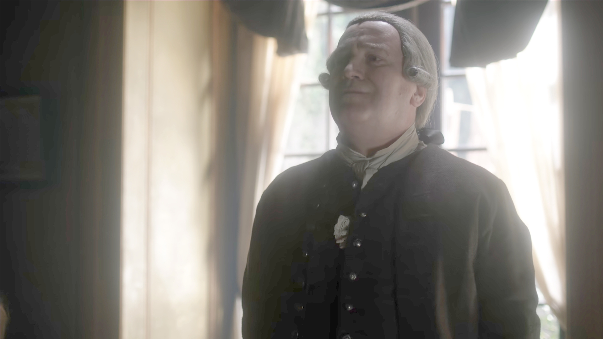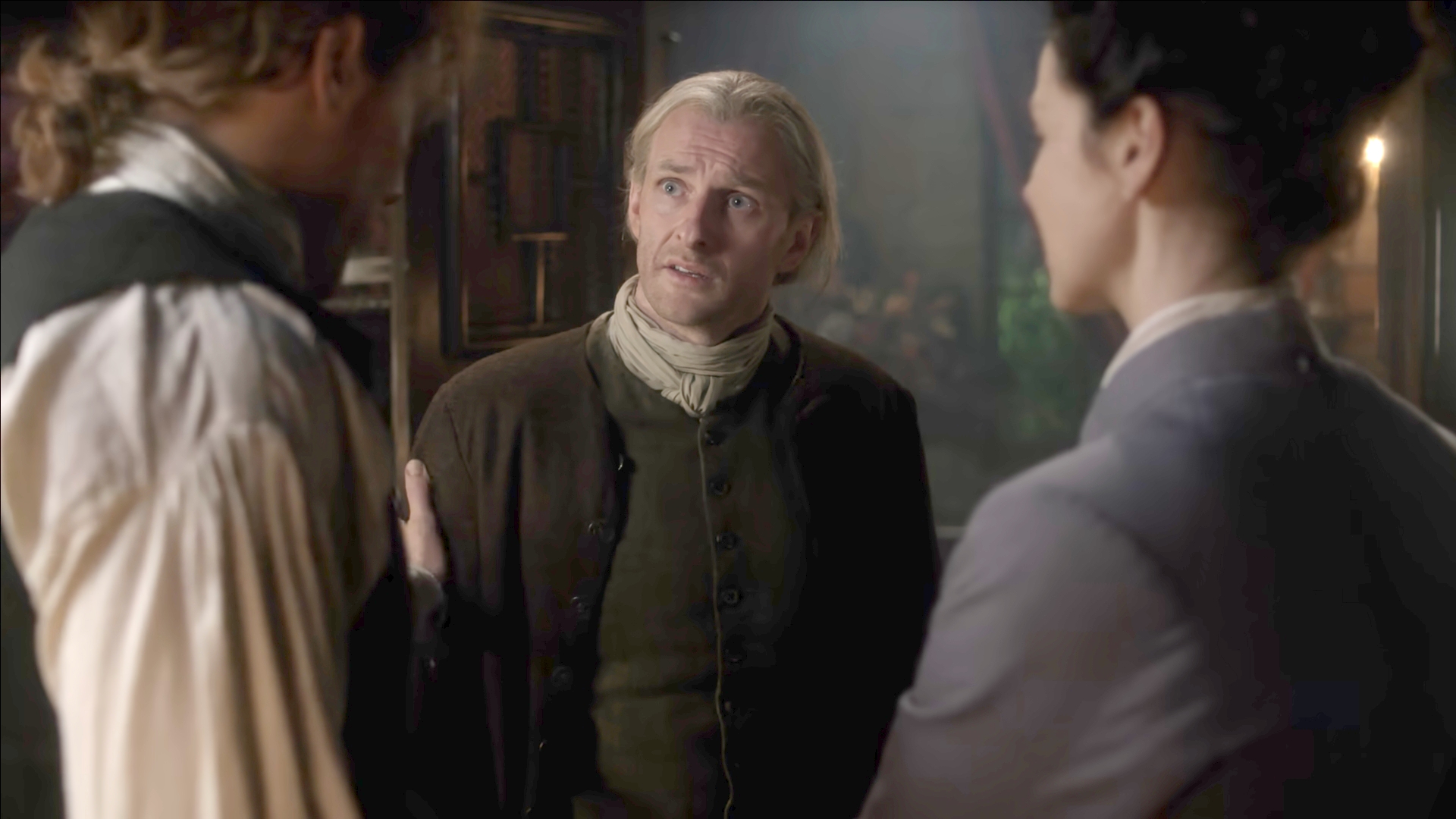 - 45 - Madame Jeanne leur annonce la visite de Ian Murray. Jamie demande à Claire de ne pas parler de la présence de petit Ian.