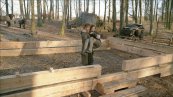 - 39 - Claire s'exerce à la carabine sur des buches. Jamie lui dit que le plus dur est de recharger le plus vite possible.