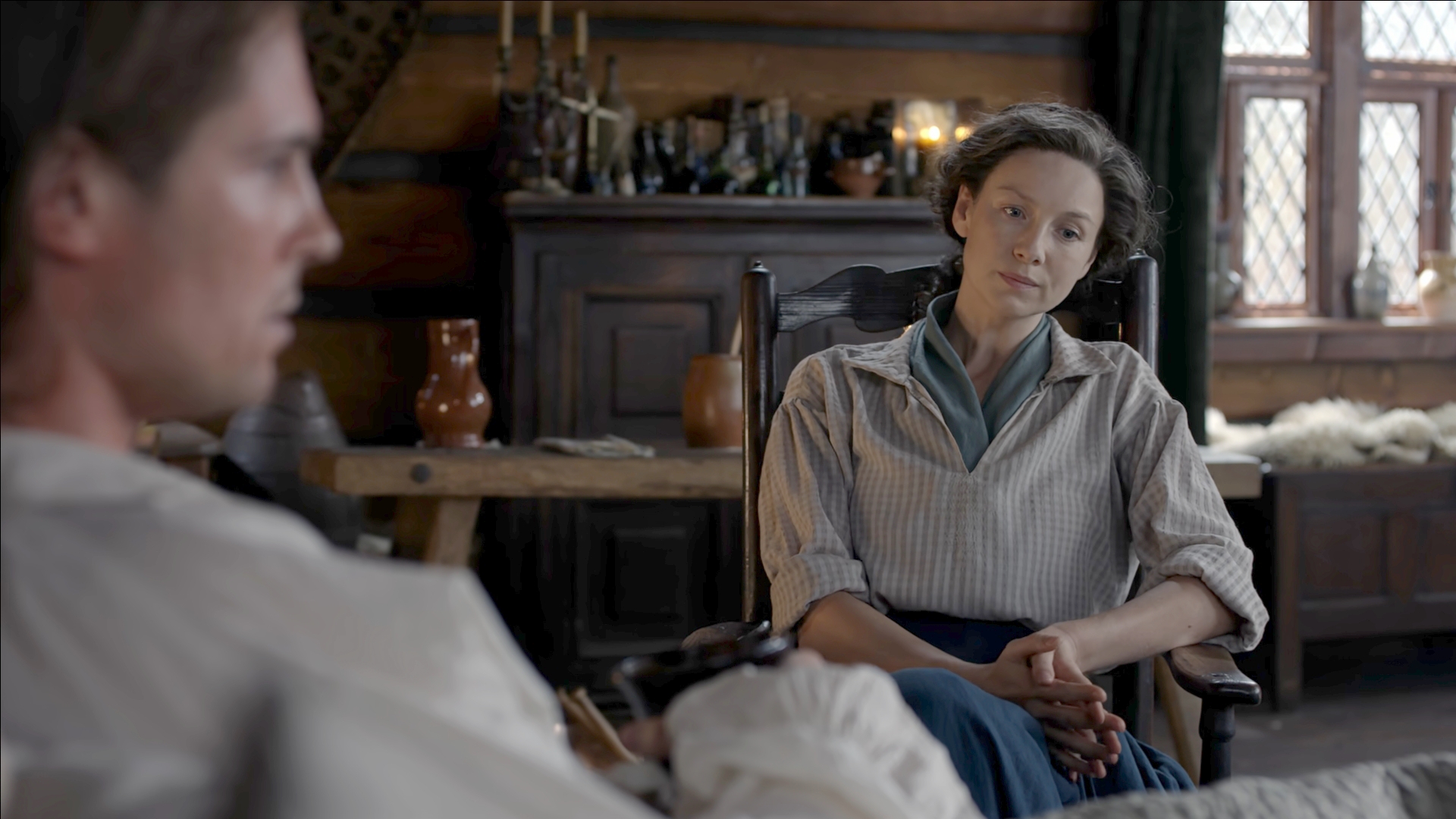 - 38 - Claire prépare des tisanes pour John et conseille à Jamie d'emmener William dans les bois durant 6 jours.