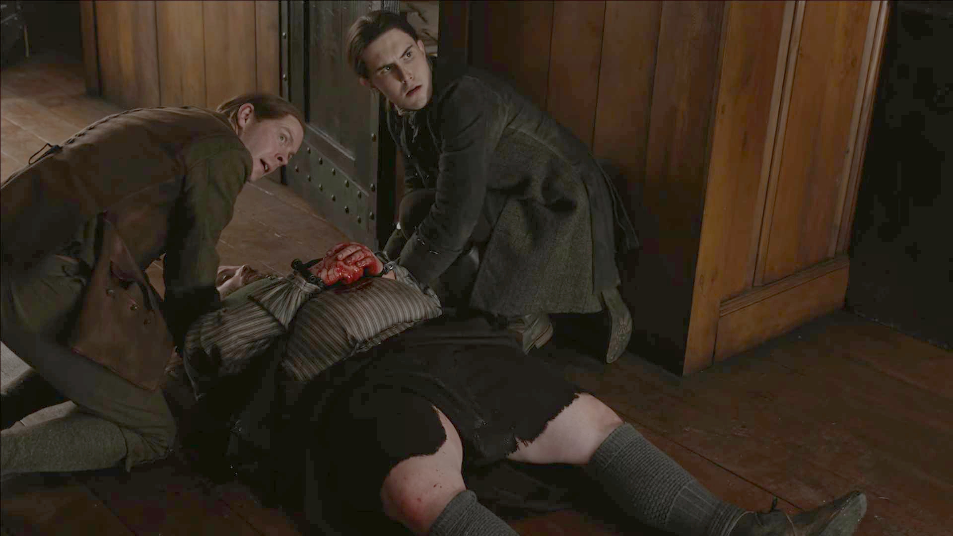 - 40 - Jamie libère les deux prisonniers restants. Ils lui apprennent que Murtagh était parmi eux et qu'ils ont une armée prète à se battre.