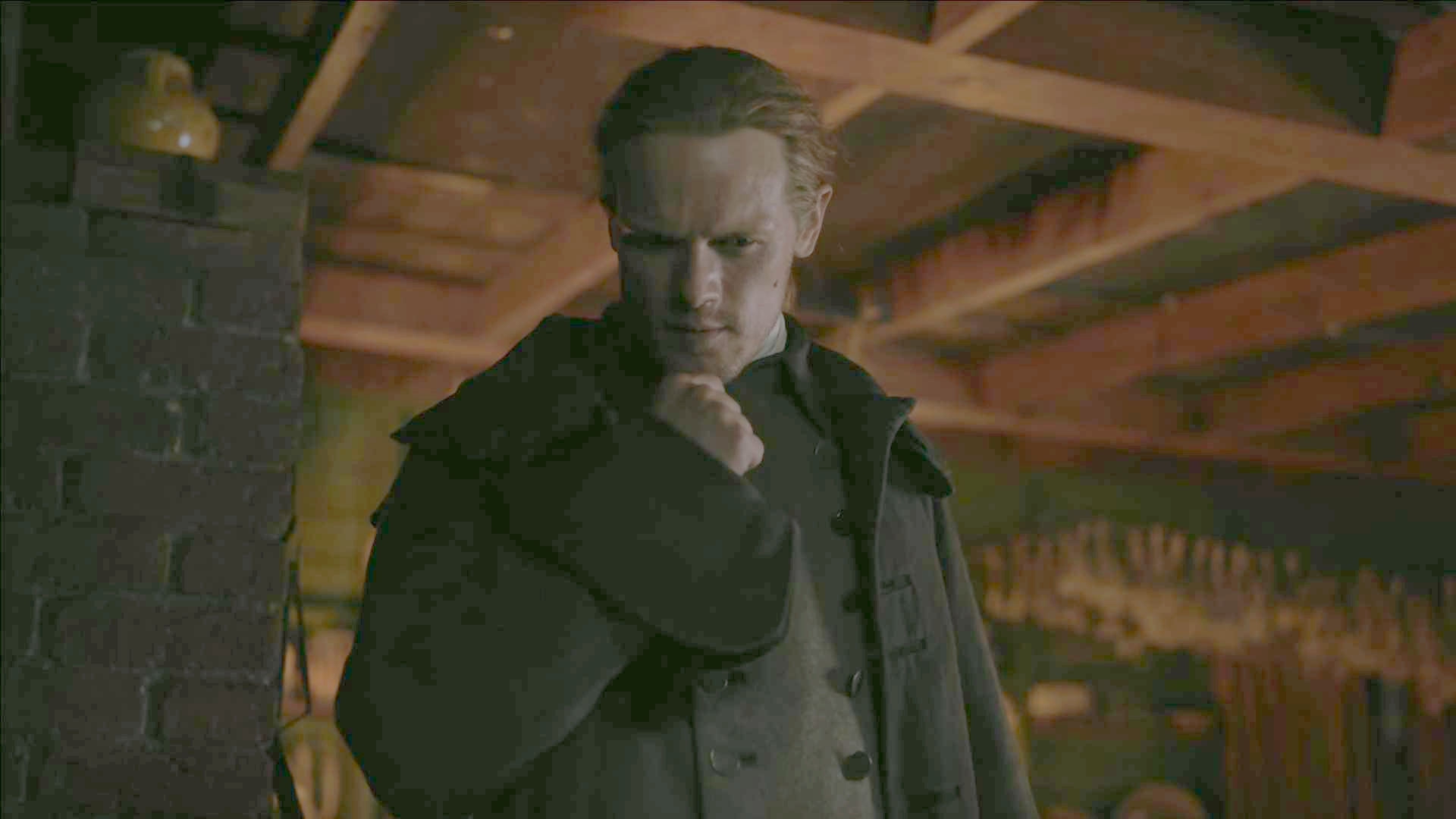 - 60 - Ils sont sur le point de partir. Claire se demande ce qu'ils vont faire de Beardsley. Jamie lui demande de sortir.