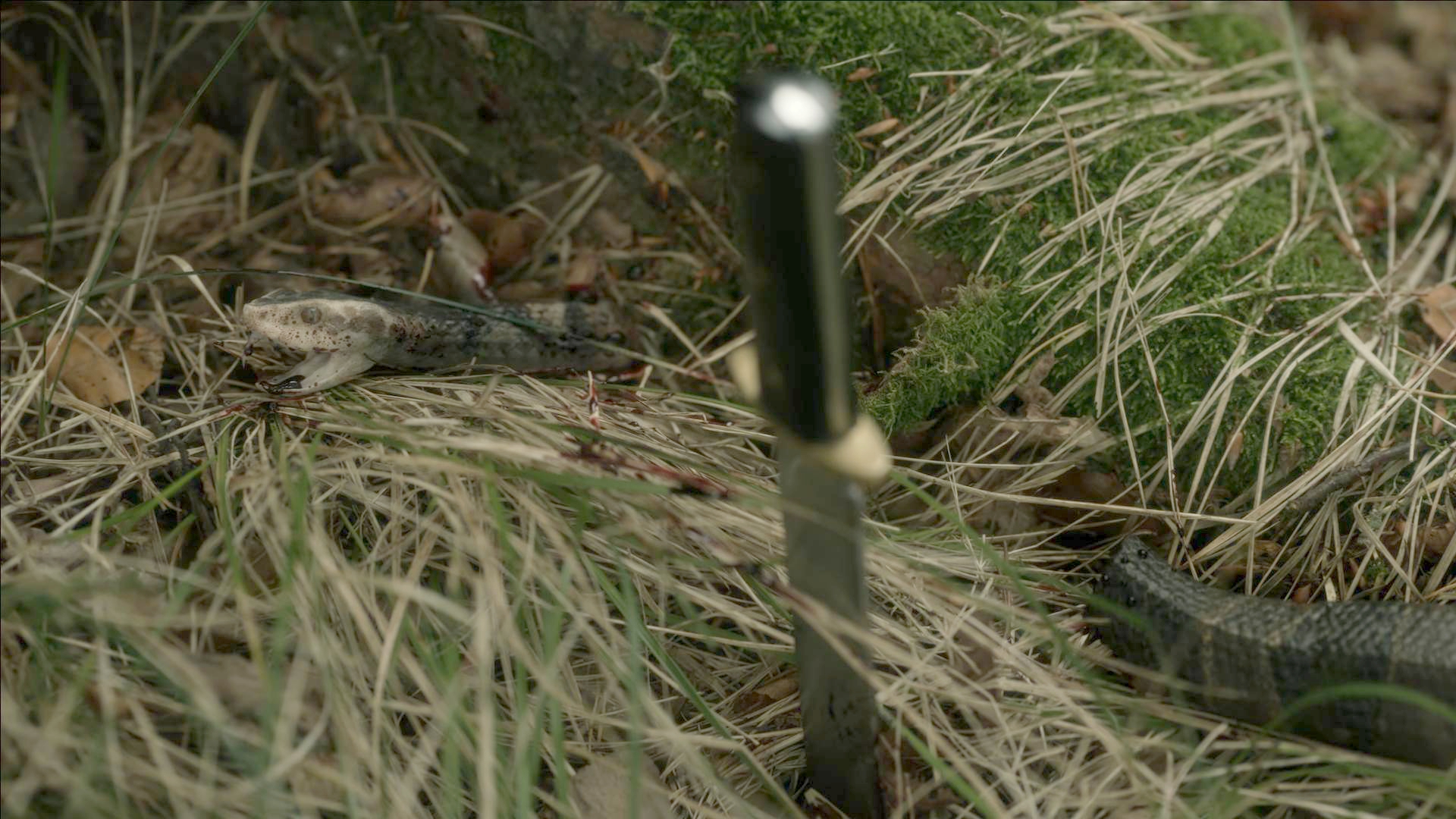 - 12 - Un serpent le mord à la jambe. Jamie lui coupe la tête, mais c'est trop tard.