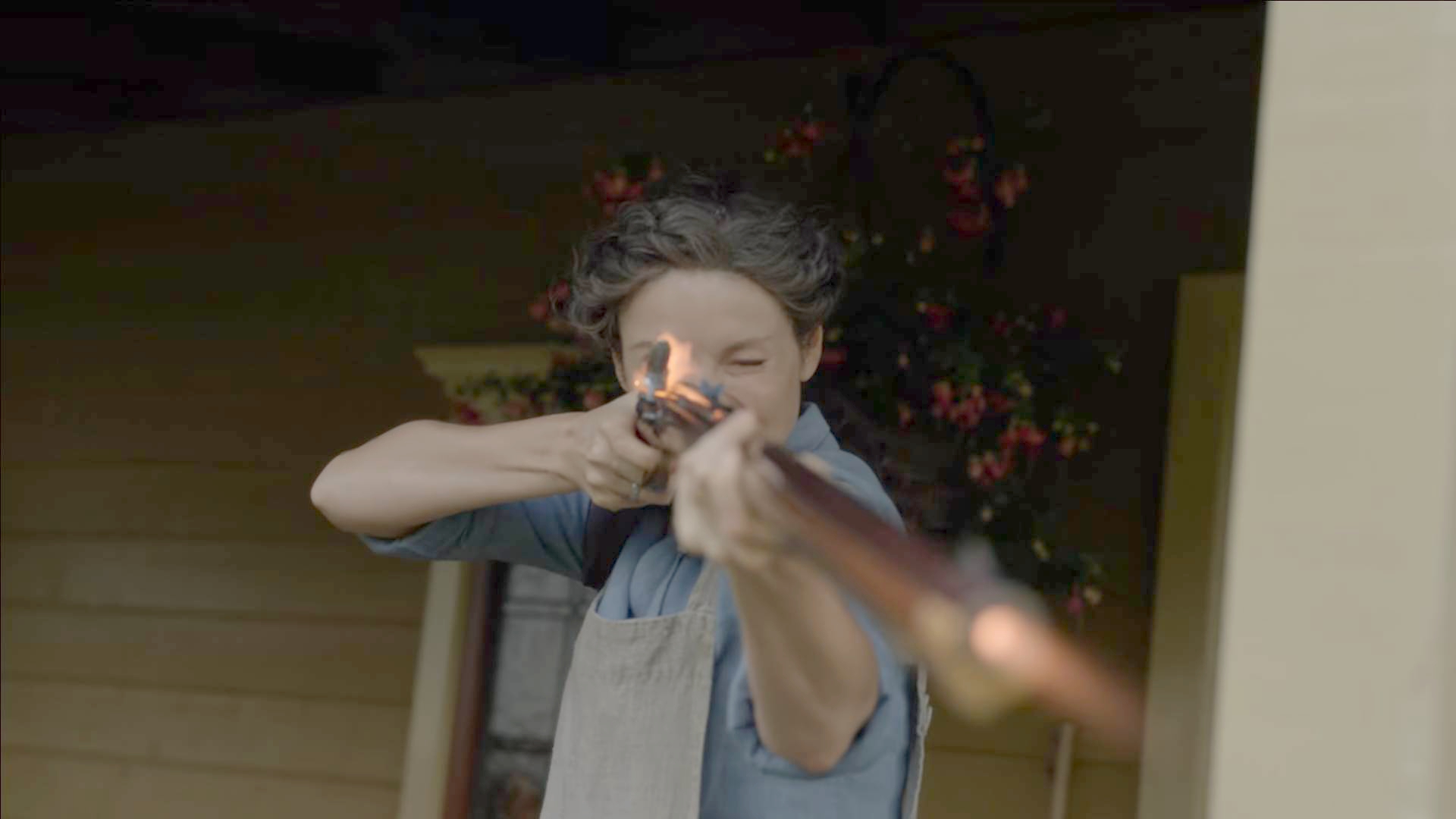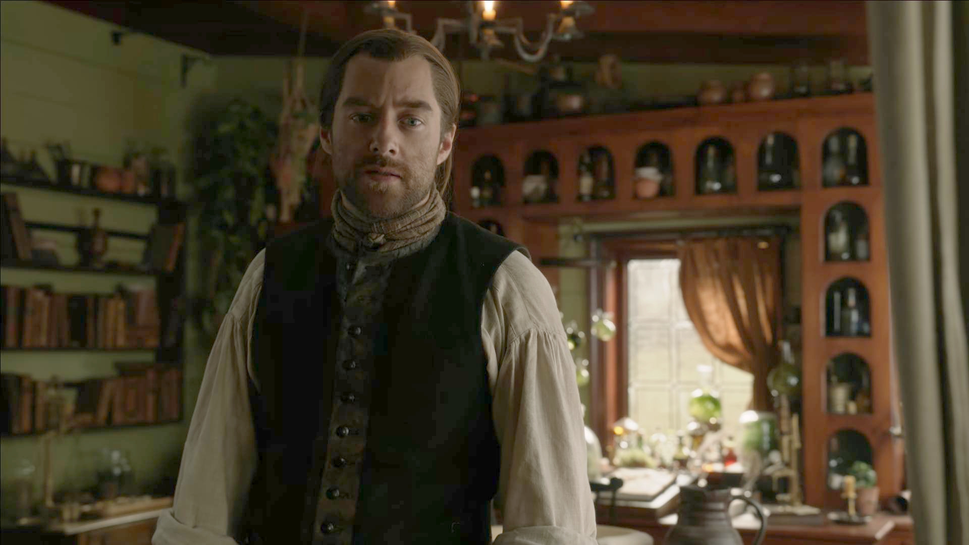 - 79 - Au moment où Claire s'apprêtait à couper la jambe de Jamie, Bree arrive avec les crocs du serpent transformés en seringue.