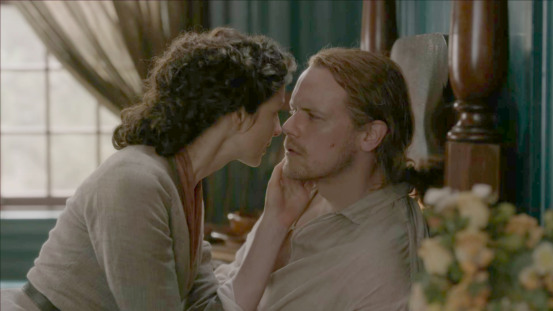 - 75 - Claire se couche sur lui et le caresse. Jamie revient à la vie.
