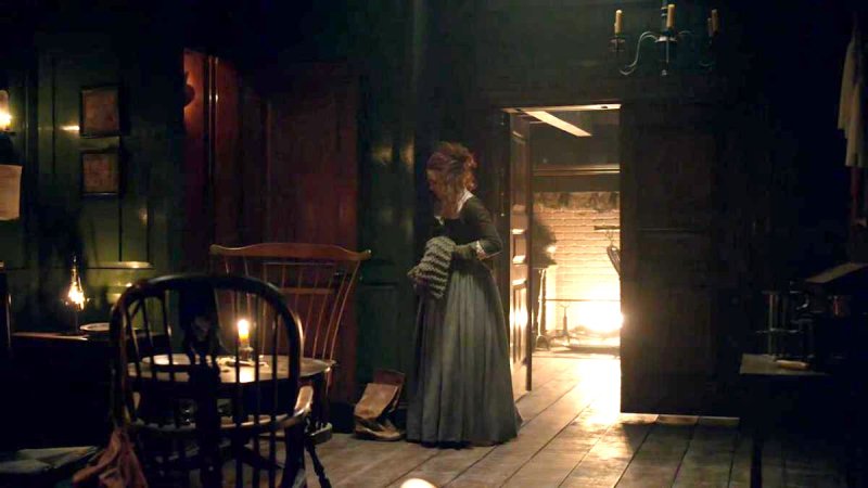 Alors que nous regardions Bree marcher dans les rues sombres à l'auberge, il était impossible de ne pas ressentir de prémonition. Elle se déplace dans ce monde comme si elle était àdansson propre temps. Elle ne sait vraiment pas où elle est et quelles sont les règles pour les femmes. Elle dit à Bonnet qu'il l'a confondue. C'est elle qui se trompe. Elle pensait qu'elle était Brianna Randall. Elle a oublié qu'elle n'était qu'une femme à Wilmington.