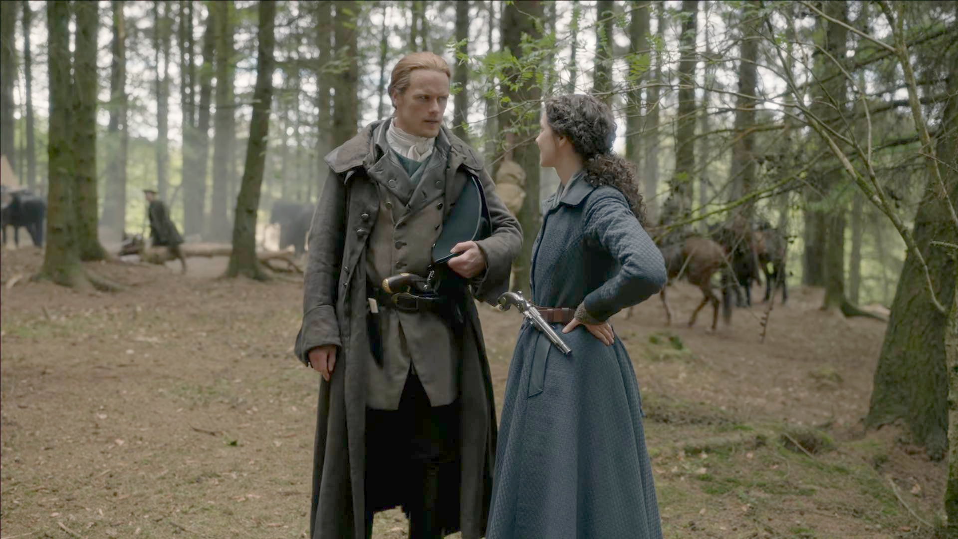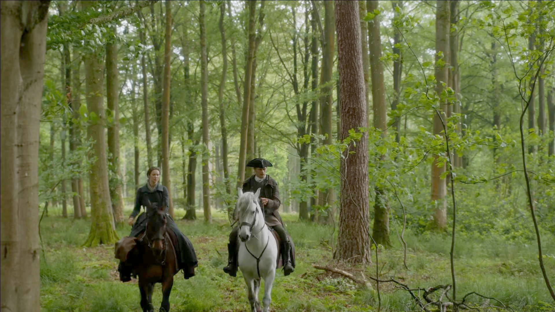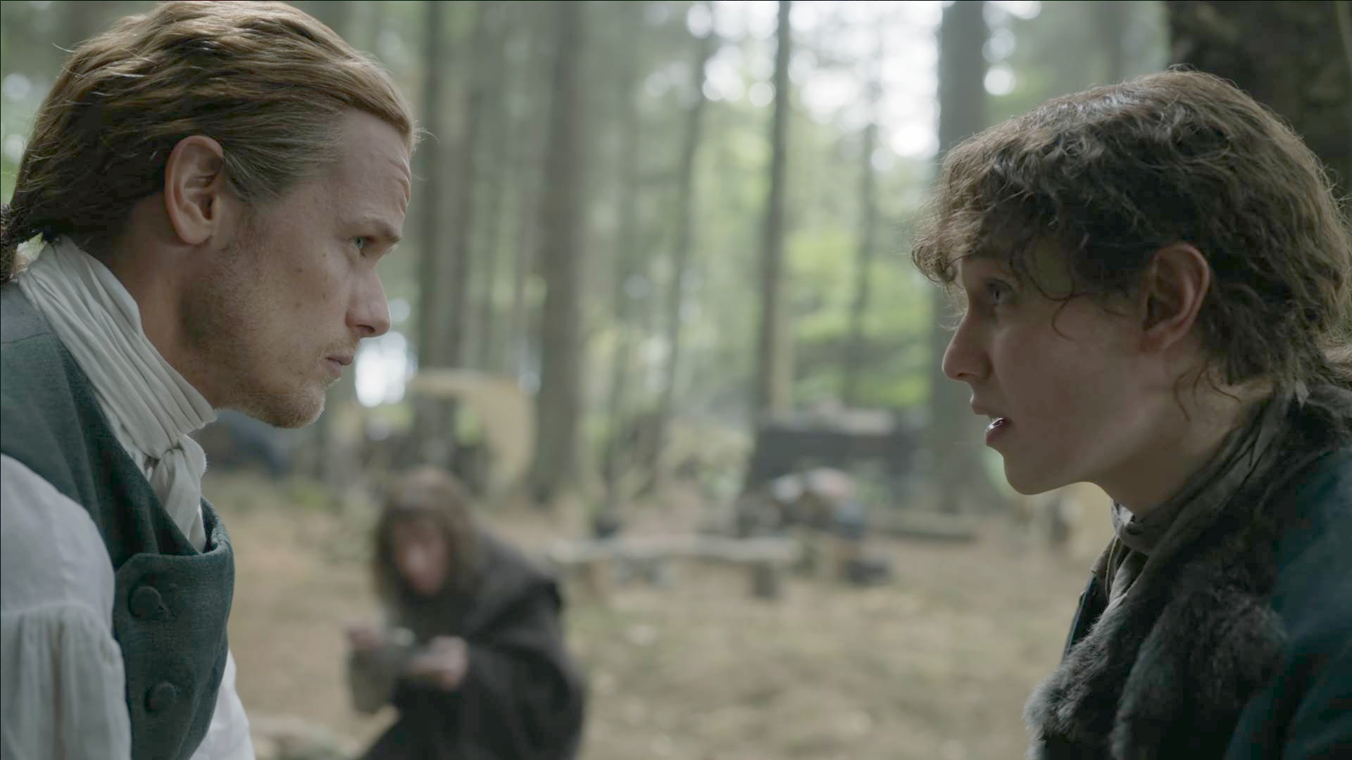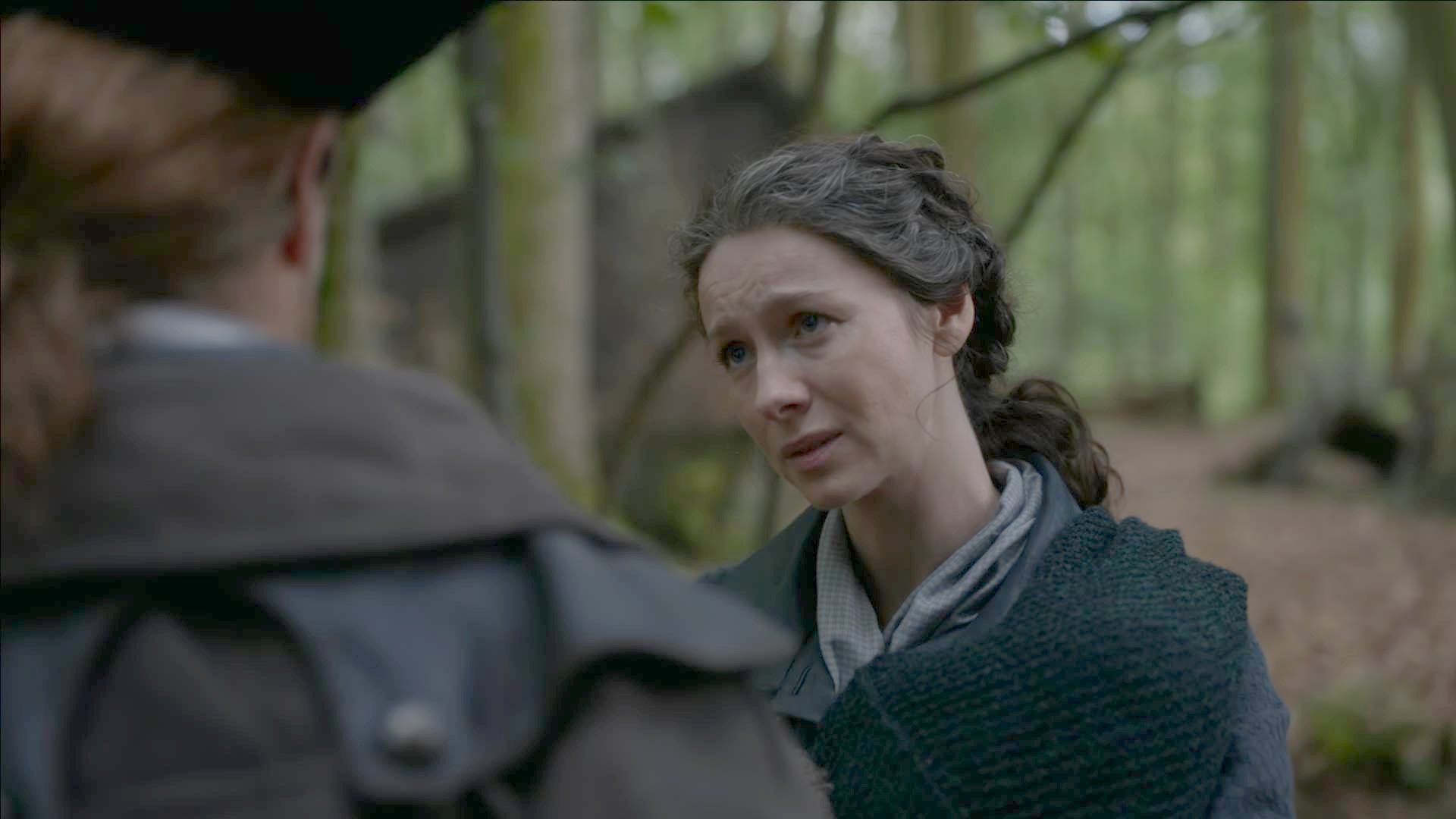 - 14 - Ils font halte dans les bois. Jamie attire Claire à l'écart.