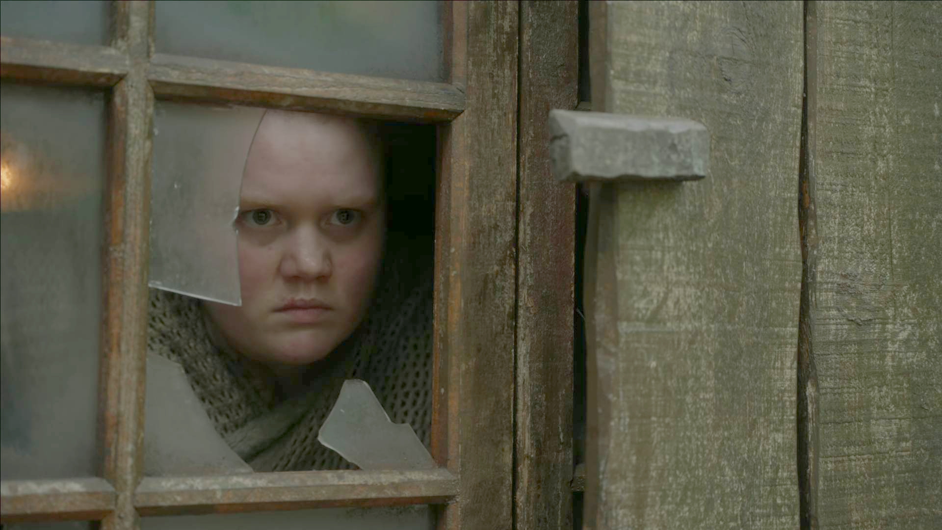 - 25 - Arrivés chez les Beardsley, Claire et Jamie se séparent. Claire va dans la grange où se trouve un cheval famélique.