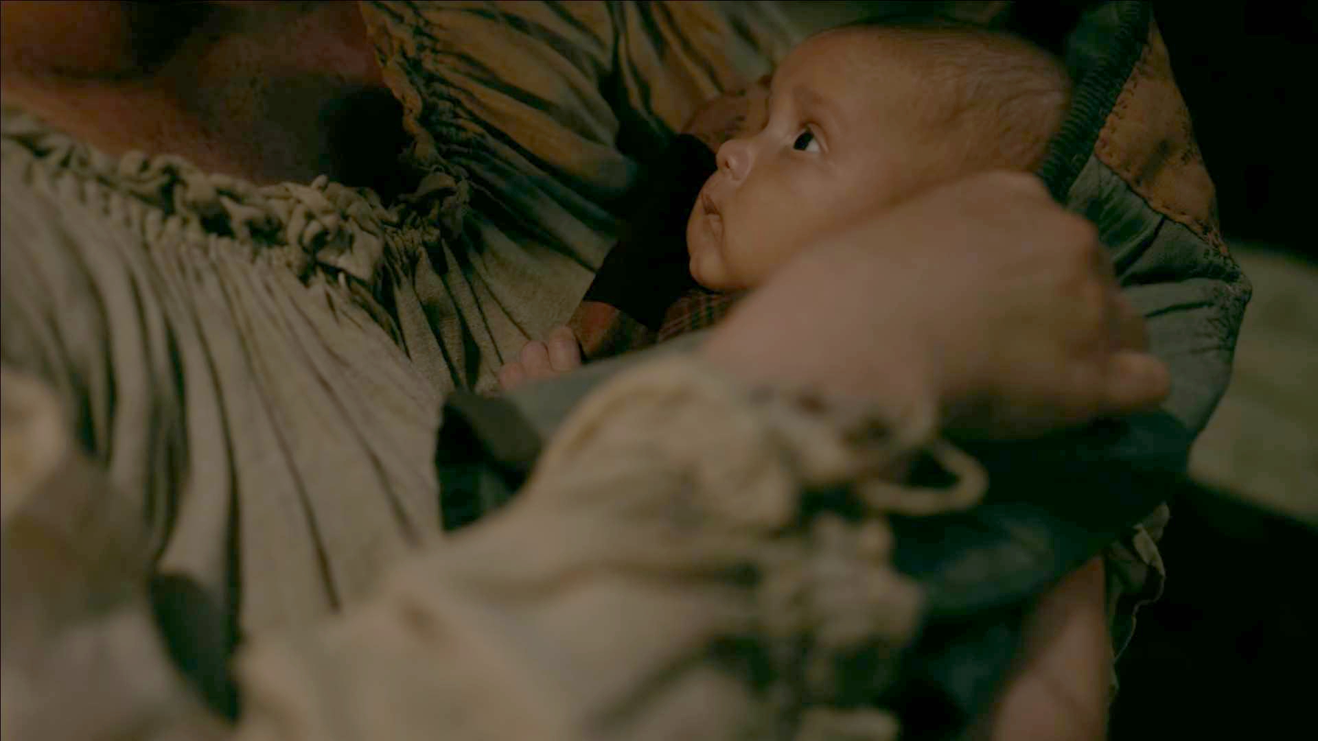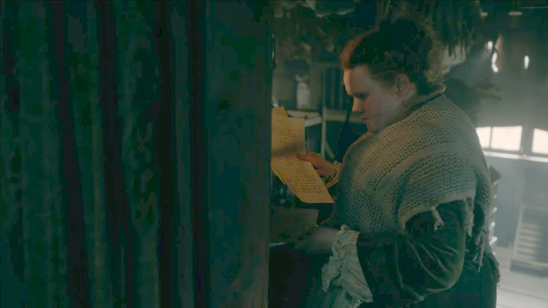 - 24 - En chemin, Jamie demande à Claire si elle peut effacer la marque de voleur tatouée sur la main de Josiah.