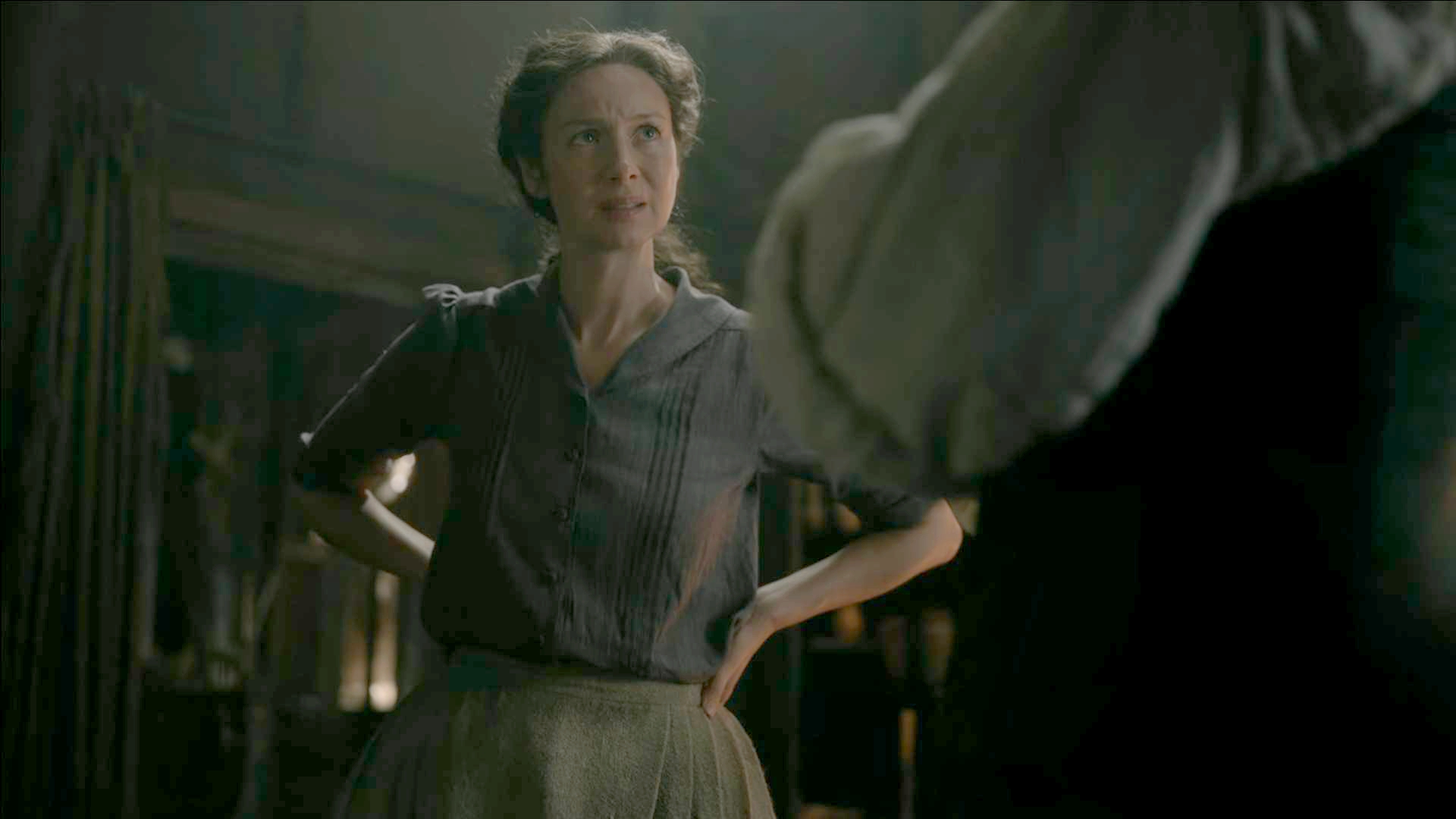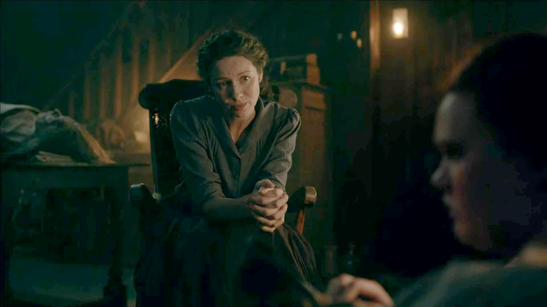 - 56 - Jamie pense qu'il n'y a qu'un monde, mais Claire lui dit que c'est faux. Elle veut que Bree et Roger retourne au 20e siècle pour être à l'abri.