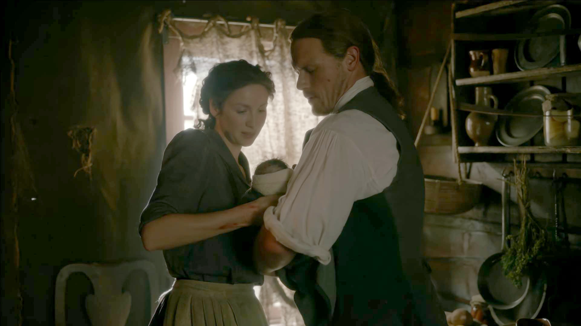 - 45 - Claire et Jamie qui n'avaient pas remarqué sa grossesse sont stupéfaits.