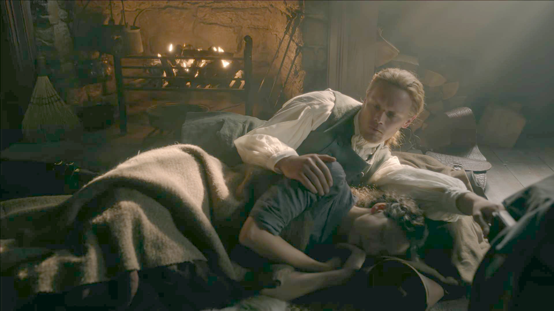 - 4 - Jamie rentre tard dans la nuit. Il regarde Claire dormir, se signe et remercie Dieu.