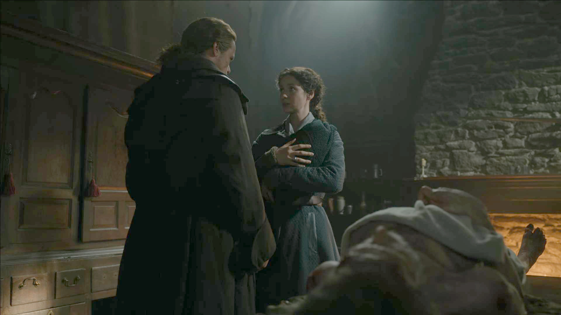 - 60 - Ils sont sur le point de partir. Claire se demande ce qu'ils vont faire de Beardsley. Jamie lui demande de sortir.